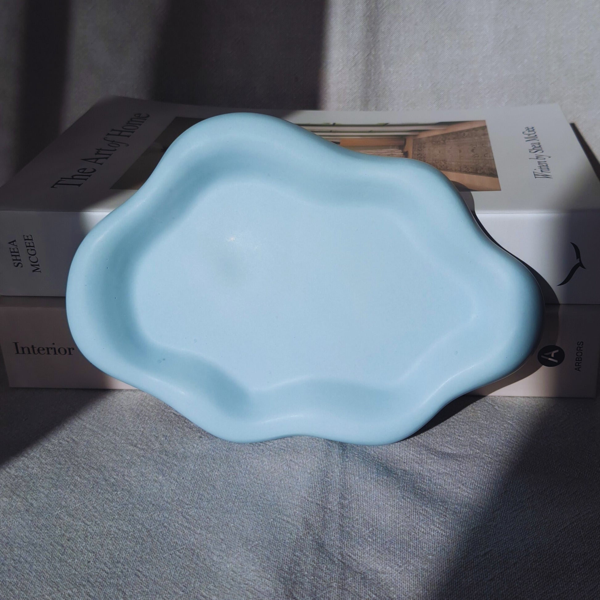Prato decorativo em forma de nuvem, num tom azul suave.